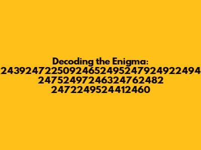 Ever stumbled upon a seemingly random string of numbers and wondered what it could possibly mean? Well, today we're diving deep into just that! Let's unravel the mystery behind the number sequence 24392472250924652495247924922494 24752497246324762482 2472249524412460. It might look like pure gibberish at first glance, but who knows? Perhaps it's a hidden code, a secret message, or just a random series of digits. Whatever it is, we’re going to explore potential interpretations and have some fun along the way. So buckle up, folks, and let's get started on this numerical adventure! We'll break down the possibilities, consider various angles, and maybe, just maybe, crack the code. From simple numerical patterns to complex cryptographic possibilities, no stone will be left unturned.