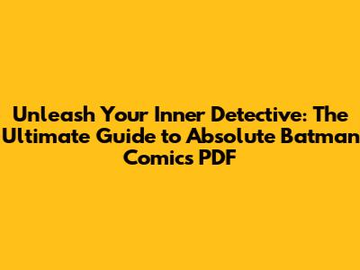Hey comic book fans! Are you ready to dive deep into the dark, gritty world of Gotham City? We're talking about Batman comics, guys, and not just any old issues – we're focusing on the absolute Batman comics PDF experience. This isn't your average superhero romp; Batman is the brooding vigilante, the detective extraordinaire, the Caped Crusader who fights crime with his wits, his gadgets, and an unwavering sense of justice. Whether you're a seasoned collector or a curious newbie, understanding where to find and how to enjoy these iconic stories in PDF format is key to unlocking a universe of thrilling narratives. We'll guide you through the essentials, from understanding what makes a Batman comic 'absolute' to where you can legally and ethically access these digital treasures. Get ready to swing into action, because this guide is your first step to mastering the Bat-verse in a whole new way.