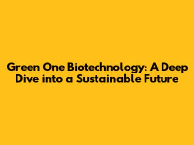 Green One Biotechnology: Your Guide To A Greener Future