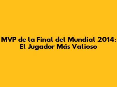 MVP De La Final Del Mundial 2014: Un Héroe Inolvidable