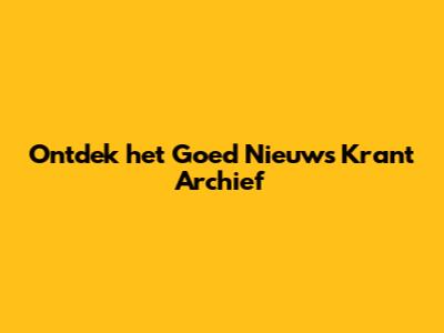 Ontdek Het Goed Nieuws Krant Archief