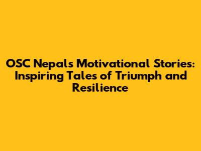 OSC Nepal: Motivational Stories Of Triumph And Resilience