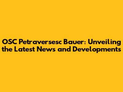 Decoding the Headlines: OSC Petraversesc Bauer News Today