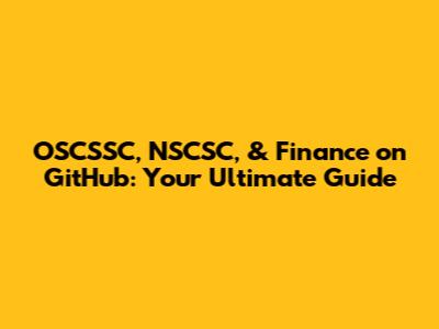 OSCSSC, NSCSC, & Finance On GitHub: Your Ultimate Guide