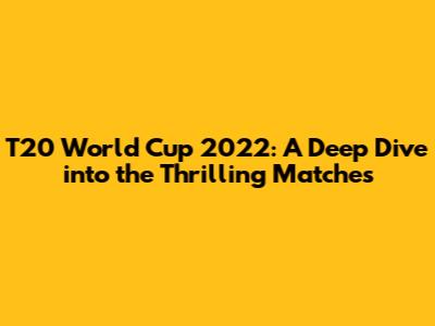 T20 World Cup 2022: Epic Matches & Highlights