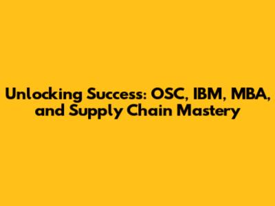 Unlocking Success: OSC, IBM, MBA, And Supply Chain Mastery
